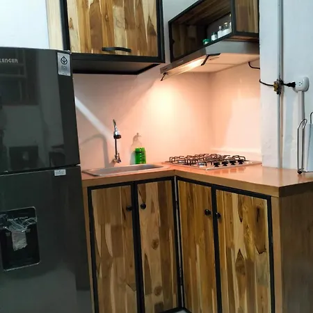 A fridge and kitchenware are a standard in a kitchen. Terminal de transporte pubico bus station can be found in proximity to the apartment.